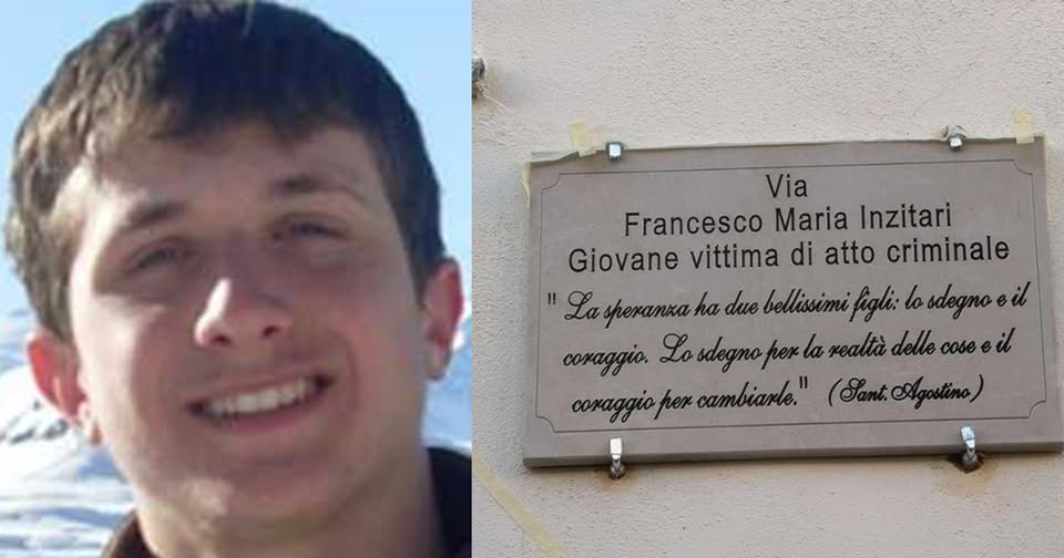A Rizziconi, lungo la via che oggi porta il suo nome — “Francesco Maria Inzitari – Giovane vittima di atto criminale” — campeggia la celebre frase attribuita a Sant’Agostino: “La speranza ha due bellissimi figli: lo sdegno per la realtà delle cose e il coraggio per cambiarle”. Un motto che riassume perfettamente la battaglia di una comunità che non ha mai dimenticato. La strada è a pochi metri dalla scuola elementare che Francesco frequentava da bambino. La stessa comunità che il 21 ottobre 2020, per volontà del sindaco Alessandro Giovinazzo, ha scelto di dedicargli un luogo simbolico, perché il suo nome non venisse inghiottito dall’oblio.