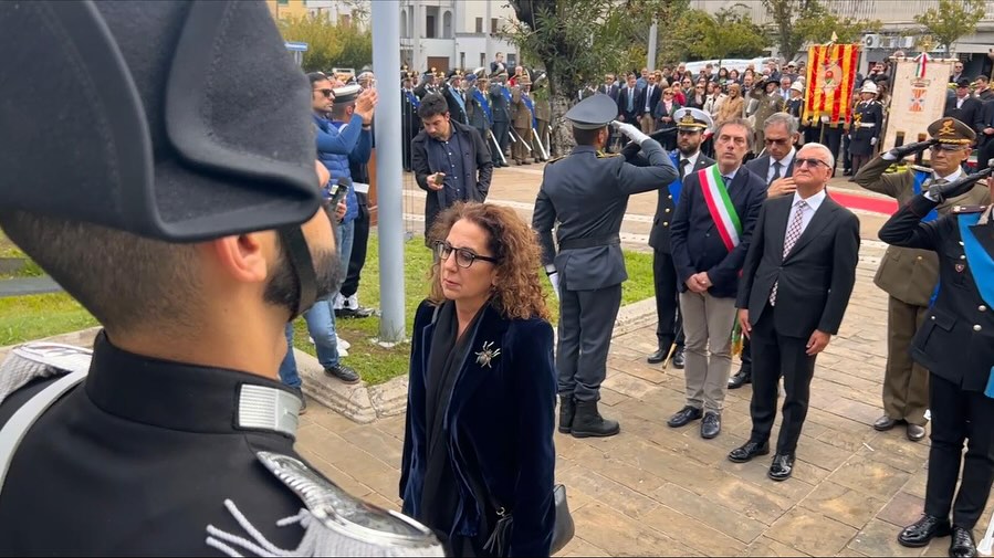 Il programma ha previsto l’alzabandiera e la deposizione di una corona d’alloro al Monumento ai Caduti, operazione compiuta dal sottosegretario Ferro insieme al prefetto di Catanzaro Castrese De Rosa, al sindaco Nicola Fiorita, al questore Giuseppe Linares e al comandante della Legione Carabinieri Calabria Riccardo Sciuto.
