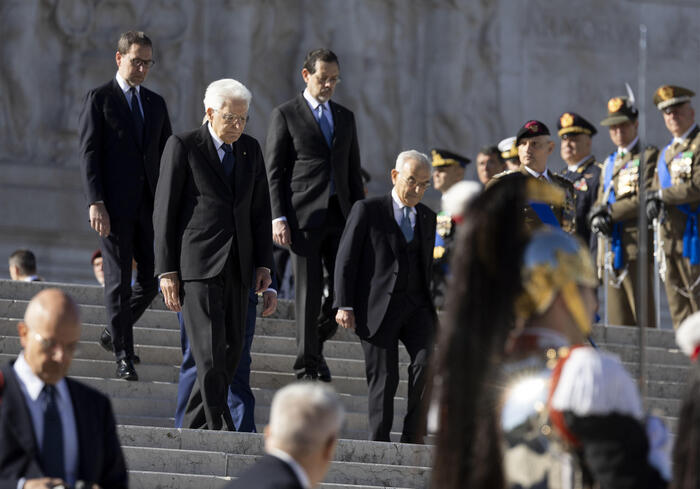 Deposta una corona d’alloro. Alla cerimonia ufficiale presenti la premier Giorgia Meloni e i presidenti di Senato e Camera Ignazio La Russa e Lorenzo Fontana, insieme ai vertici delle Forze Armate e alle associazioni combattentistiche e d’arma