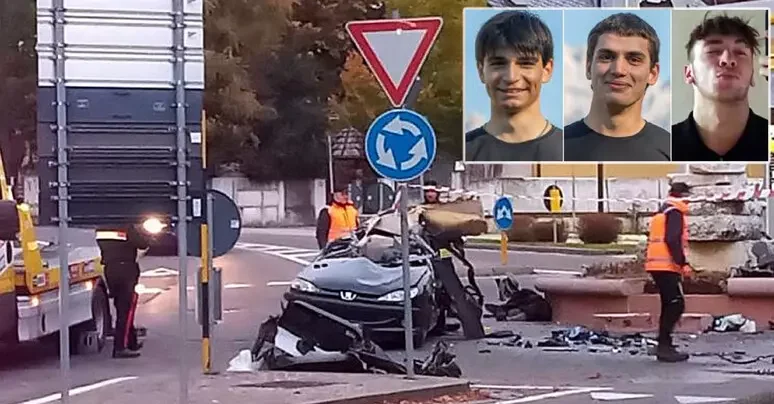 Auto a velocità folle si schianta contro una fontana: tre ventenni morti sul colpo, due feriti